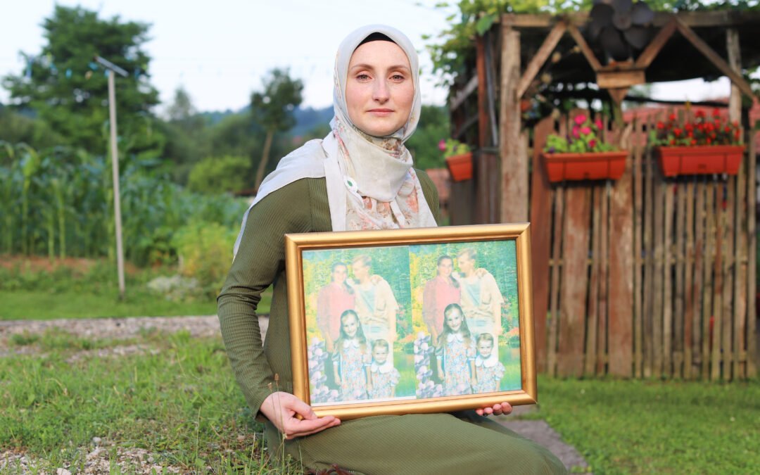 2/2 ”When we arrived at the safe territory, we lived in a school for a while. Later we moved here to Tinja. In the beginning, we lived with four other families. I started going to school for the first time. I remember seeing other children with their fathers and wondering if my father would ever come back. At school, I never said that I didn’t have a father anymore. I always kept hope, and I would tell the kids in school that he would come back one day. I remember children in school telling me that I was a liar and that my father was dead. It upset me so much that one day I went to school and told everyone my father had returned. I was so convincing that even the teacher believed me, and had to call my mom to check. We never had the chance to take a family portrait. My mother was still pregnant when she had to say goodbye to my father, so my sister never got to meet him. Originally this was a photo of my mother, my sister, and me. We added our father with photoshop so that we would have one family photo with the four of us. In 2010, we got confirmation that they had found his body. Every year, I go to his grave to say a prayer. I know it’s not rational, but to this day, I feel guilty. Sometimes I think he should have tried to escape through the woods. It was as if he wanted to spend his last moments with us.”
