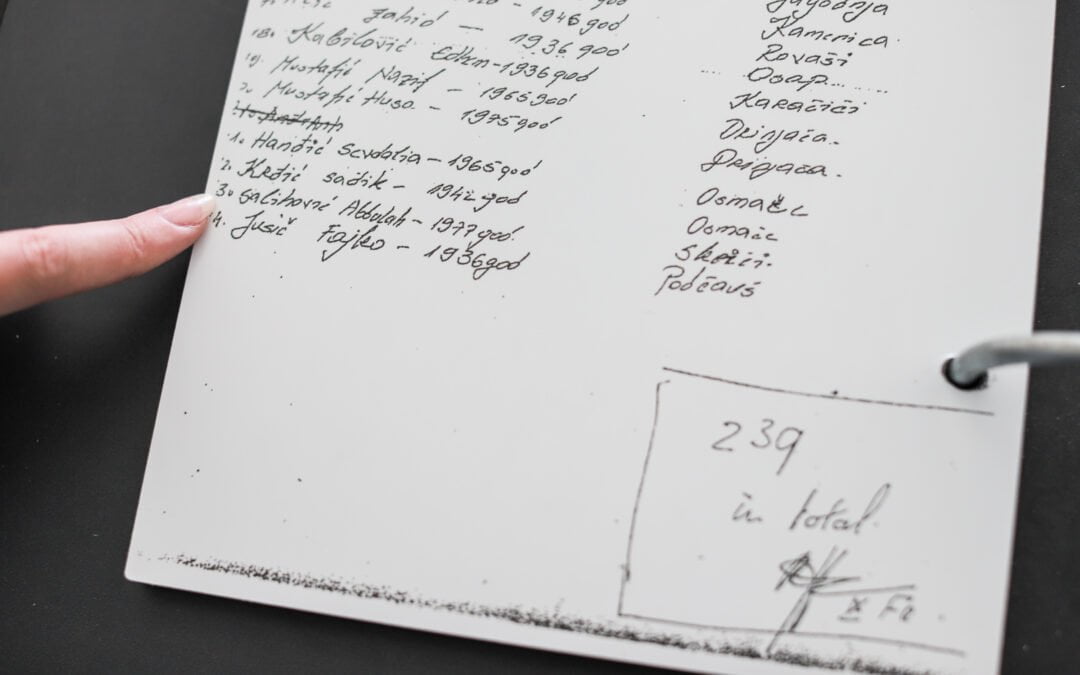 5/5 ‘’In February 2020 I went to the old factory, which is now a museum, as a translator with a group of students. While the students were going through the museum, I sat down. On the table, there was a file with some documents. I randomly scrolled through the pages, and I saw it was a list of names. When I turned to the last page, I saw the second-last name on the list. It was my brother’s full name and year of birth: SalihovicAbdulah – 1977.”